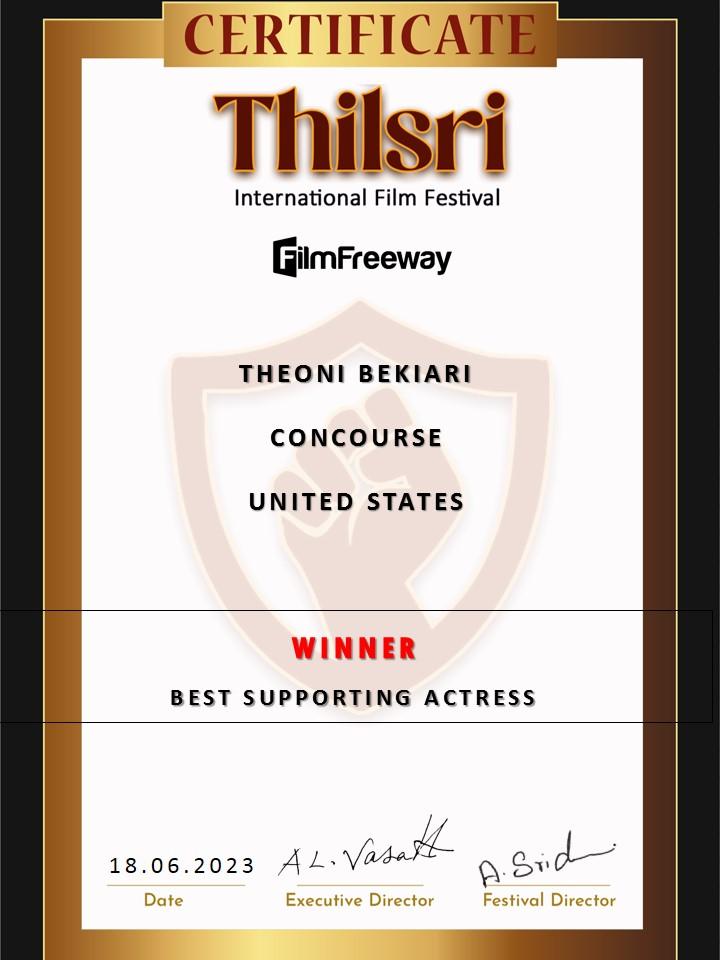 After graduating in 2022 she has continued to work both in front and behind the camera! She has had the pleasure to work in award winning productions such as “Ten Why’s”, “The Spell That Backfired”, “Bet”, “Highschool Revenge”, “Person of Interest” and more. She has won two Best Supporting Actress Awards in 2023 for her role in “Concourse”, from the International Film Festivals Tekka and Thilsri!